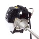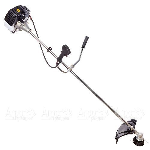Основу бензокосы составляет компактный и мощный двигатель внутреннего сгорания, потребляющий стандартную смесь неэтилированного бензина и синтетического масла. Запускается агрегат легко с помощью ручного стартера. Удобная ручка велосипедного типа регулируется под рост оператора. Наплечный ремень снимает нагрузку с рук и равномерно распределяет её по всему телу. Защитный кожух, установленный над режущей частью, не даёт мусору и мелким камням разлетаться, что делает работу с триммером безопасной.
