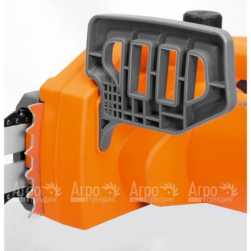Дополнительная информация: металлический зубчатый упор, индикатор уровня цепного масла, защита от случайного включения, моментальная остановка цепи