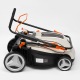 Модель эргономичная, удобная в работе, хорошо продуманная. Все органы управления сконцентрированы на рукоятке. Корпус выполнен из ударопрочного пластика. Модель предельно малошумная, отличается почти полным отсутствием рабочих вибраций. Высота кошения регулируется одним движением руки. Газонокосилка складывается для удобства хранения.